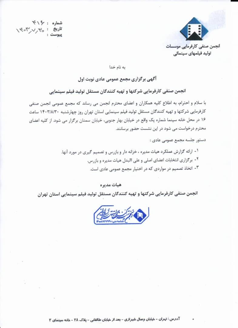 انجمن صنفی تهیه کنندگان مستقل سینمای ایران در سال ۹۷ با حضور تعداد زیادی از چهره هاو تهیه کنندگان مطرح کشور تشکیل شد